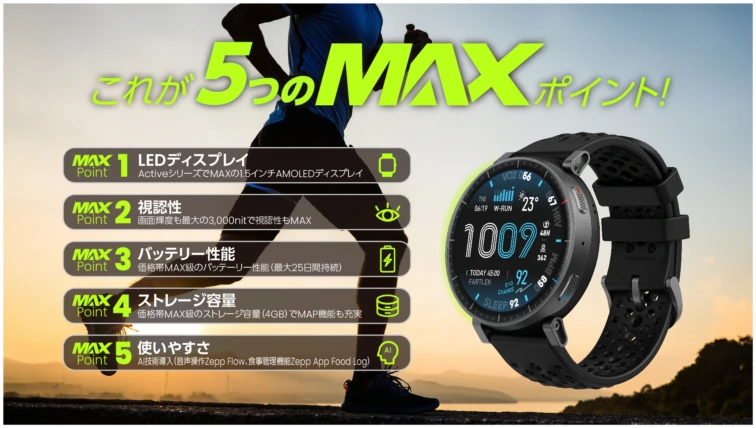 Active Maxは最大輝度3,000nitに対応しているため、直射日光下や屋外アクティビティ中の視認性もバッチリ!