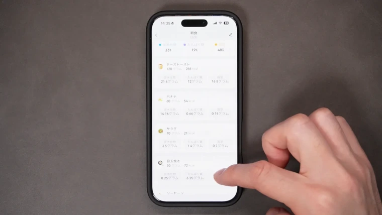 筋トレ中の方はもちろん、食事制限やダイエット中の方にはかなり心強い機能でもありますし、面倒な食事管理のハードルをグッと下げてくれるとても便利な機能です。