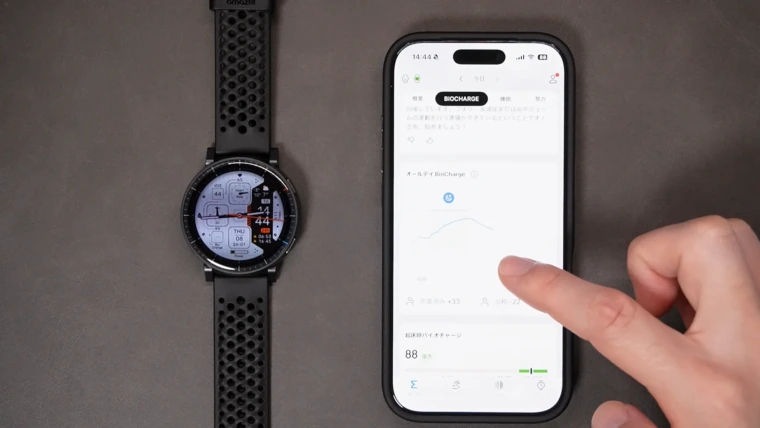 BioCharge(バイオチャージ)にも対応しているため、体内のエネルギーレベルをバッテリー残量のように0〜100の数値で確認することも可能です。