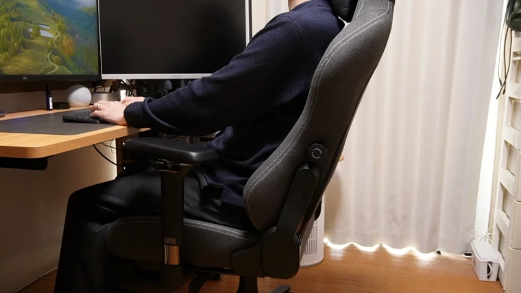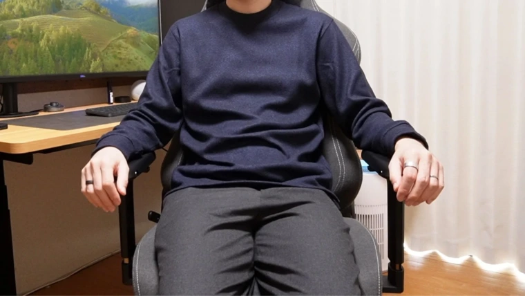で、肝心の座り心地に関してなのですが、一言で言えば「結構硬め」です。これまで自宅で使ってきたどのゲーミングチェアよりも反発が強い印象です。