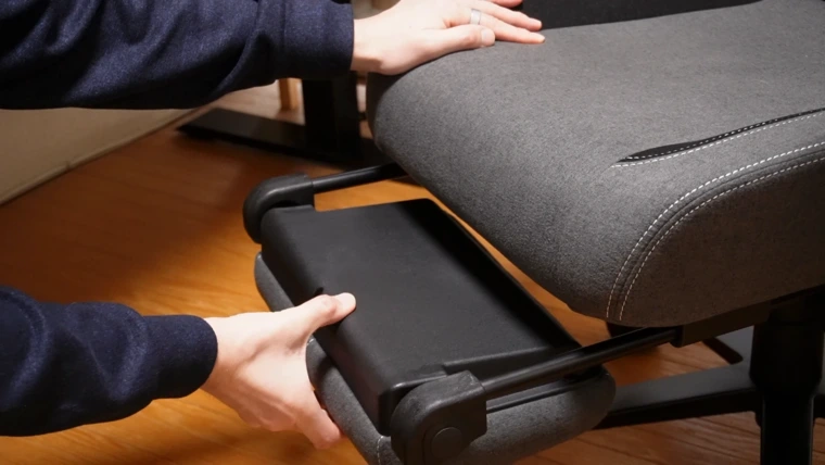 しかも座面下には幅41cmのフットレストが収納されており、引き出すだけでワンタッチで展開可能です。