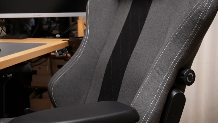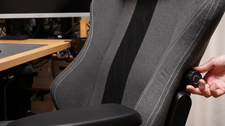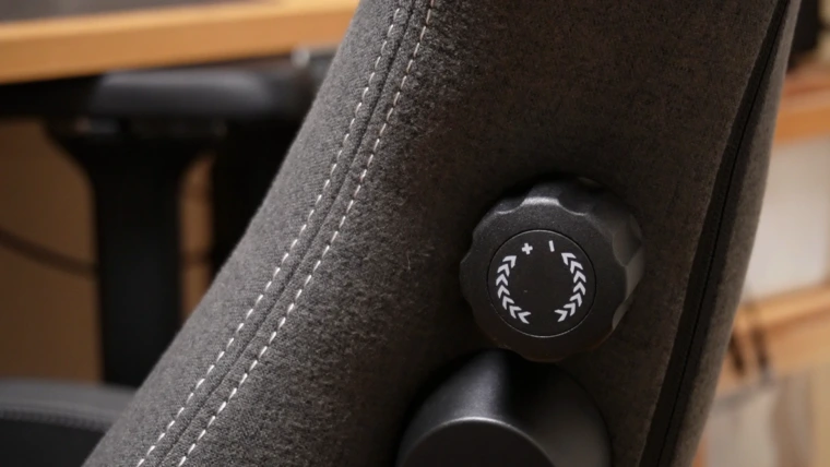 画像だとわかりにくいかもしれませんが、ダイヤルを回すと背もたれ内部が収縮してカチッと背中に当たってくれます。最適な位置を見つけるのに少し苦労しますが、自分のS字カーブにフィットすると超快適です。