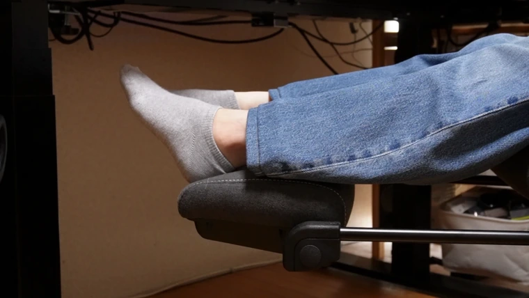 「作業」と「休息」をシームレスに移行できるのが最大のメリットです!フットレストが一体化になっていることで、省スペース化にも貢献大です
