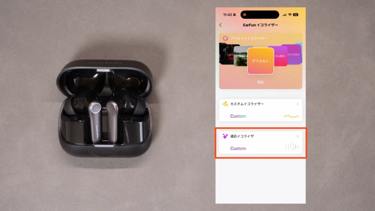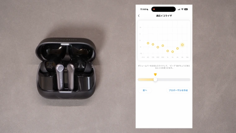 専用アプリ「EarFun Audio」にある、適応イコライザーを活用すると自分の聴力に合わせたオリジナル設定を簡単に施すことが可能です。
