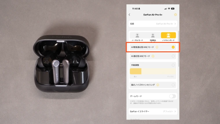 | AI適応型ANCモード | 外音ノイズに合わせた最適なノイズ低減を自動調整 |