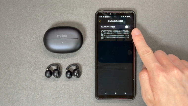 ちなみにマルチポイントを利用する際は、こちらの「デュアルデバイス接続」をONにするだけ。