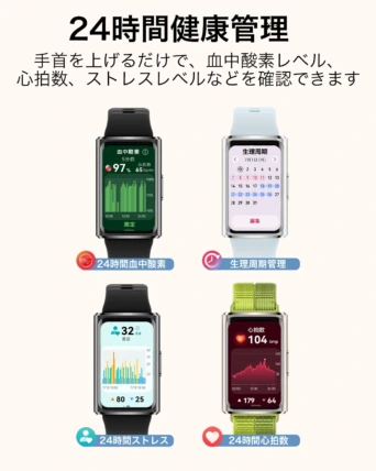 心拍数や血中酸素、ストレスや女性の生理周期管理などを24時間365日モニタリング。