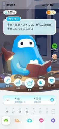 こうしたデータは専用アプリ「ウェリー」でわかりやすく管理してくれます。ポップなイラストなので、ゲーム感覚で続けられるのも嬉しいところですね。