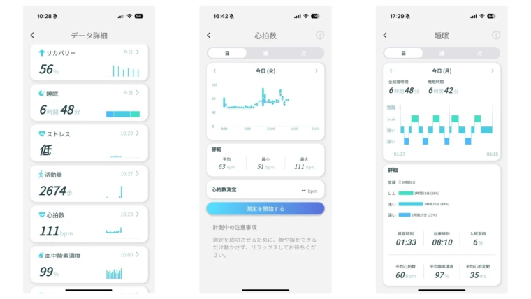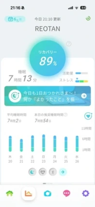 また、翌朝に算出される「リカバリースコア」(回復力)を通じて、その日の体調や行動計画を立てられるのも魅力の一つ!