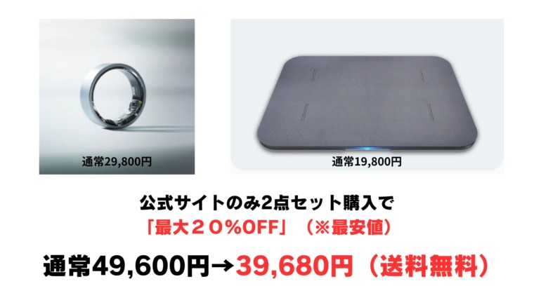 スマートリカバリーリングとスマートバスマット(体組成計モデル)をセット購入すれば、過去最安値となる約1万円オフとなる超大チャンス!!!
