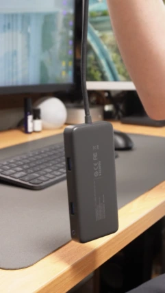 突然ですが、こういったUSBハブを繋いだ時にデスクがごちゃごちゃしたり、宙ぶらりんになって邪魔だと感じたことはありませんか?
