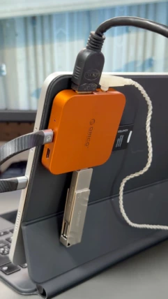そんな時に本製品に外付けSSDやSDカードなどを繋ぐげば、いつでもどこでも「直」に保存可能。