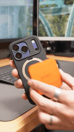 背面側には強力なマグネットを配置。 MagSafe対応のiPhoneならそのまま貼り付けできますし、付属のリングを取り付ければAndroidスマホなどでも利用可能です。